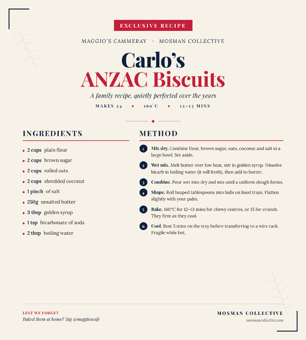 For the first time, Maggio’s in Cammeray has shared its secret ANZAC Biscuit recipe with Mosman Collective.