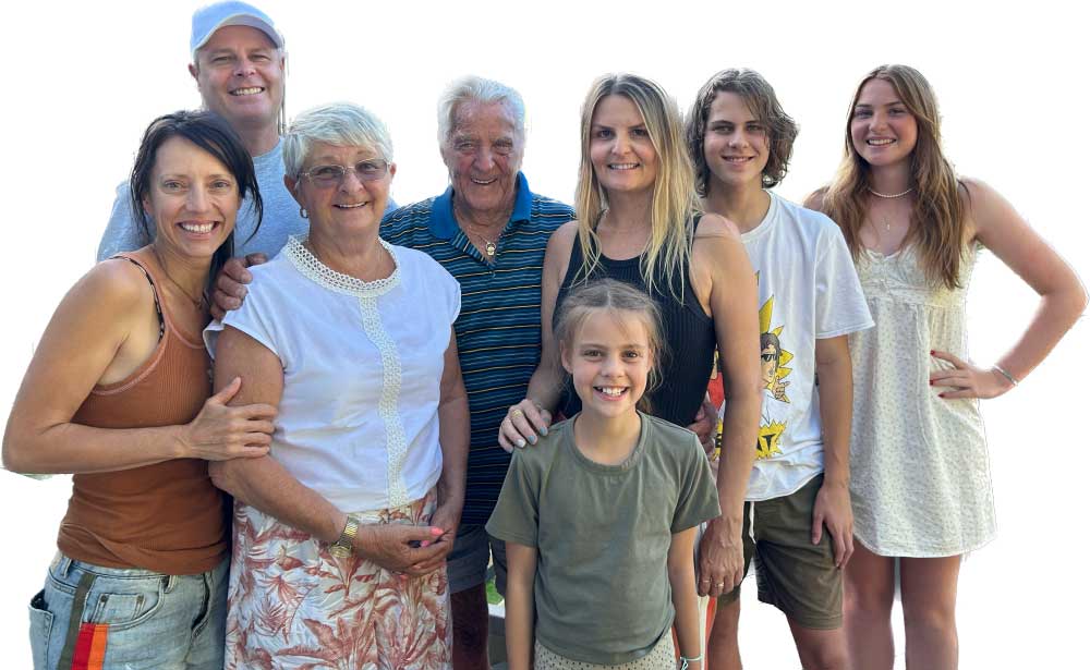 Brian (pictured here with family) still lives on his own, has an active social life, and continues to inspire the Mosman community.