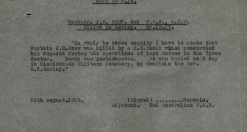 Captain Joseph Edward Crew, one Mosman local who lost his life in Passchendaele in 1917.