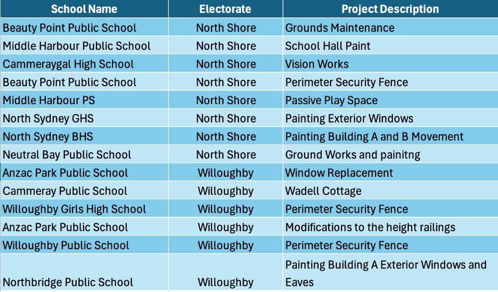 “Projects include accessibility improvements, freshly painted walls, refreshed outdoor areas, repaired walkways and other essential works to ensure clean, safe and welcoming environments for staff and students,” a spokesperson for NSW Education told Mosman Collective.