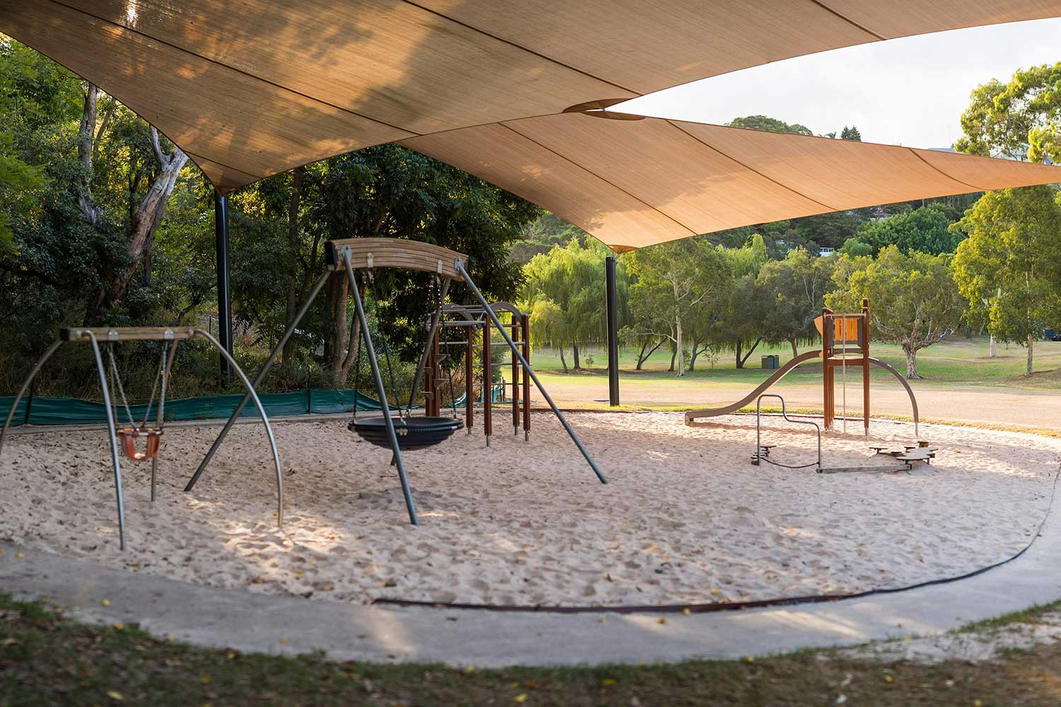 Council also notes the current shade structure may be retained, but the shade cloth would need to be replaced (with community preferences helping guide the final outcome). Playground boundaries may be subtly defined using natural materials such as sandstone blocks, while play elements are expected to incorporate natural timber and nature-inspired equipment.