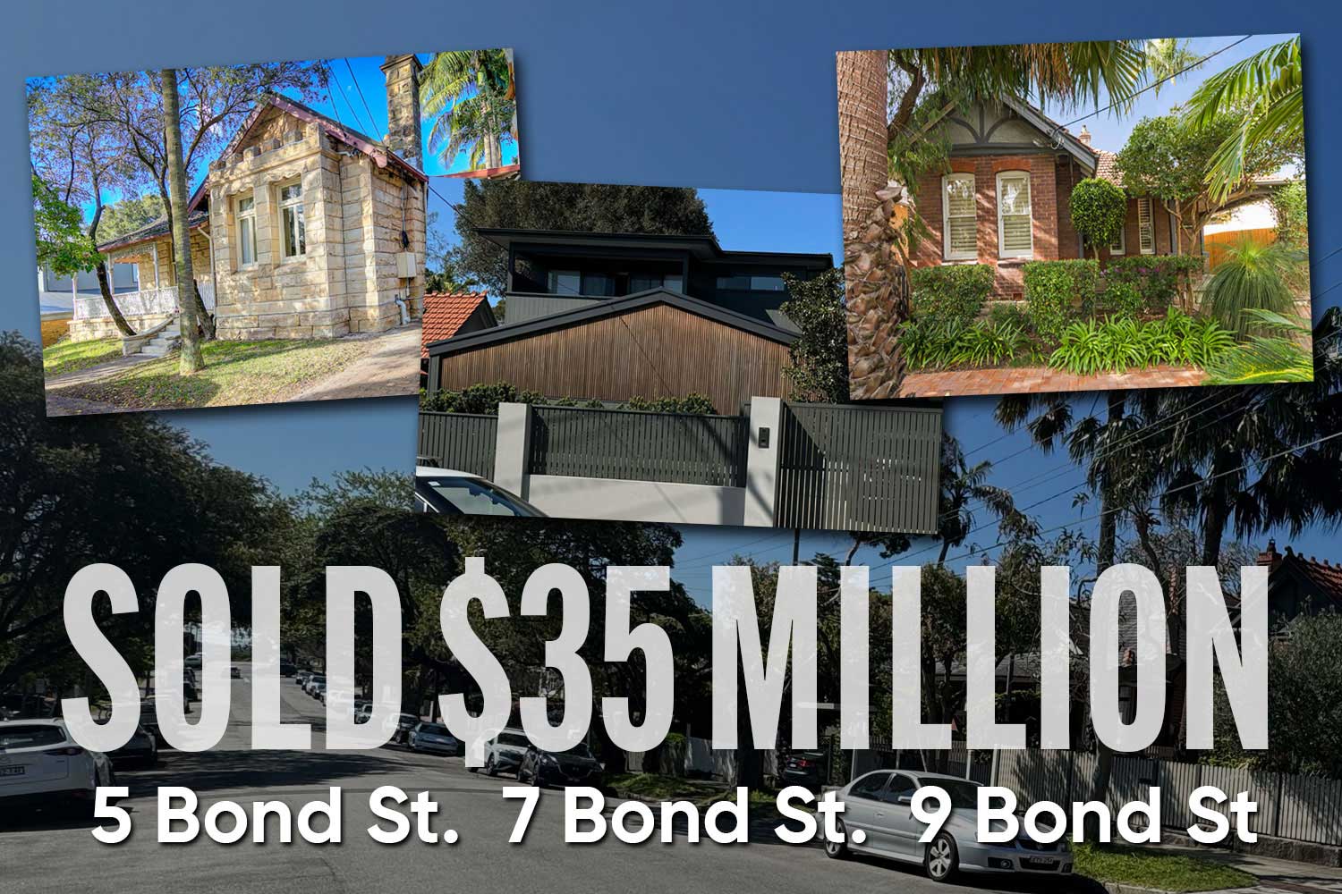 Three Mosman home owners are celebrating a huge pay day after the 435 million sale of their properties sold on Bond St.